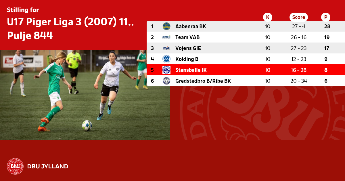 U17 Piger Liga 3 (2007) 11:11/9:9 - forår 2024, Pulje 844
