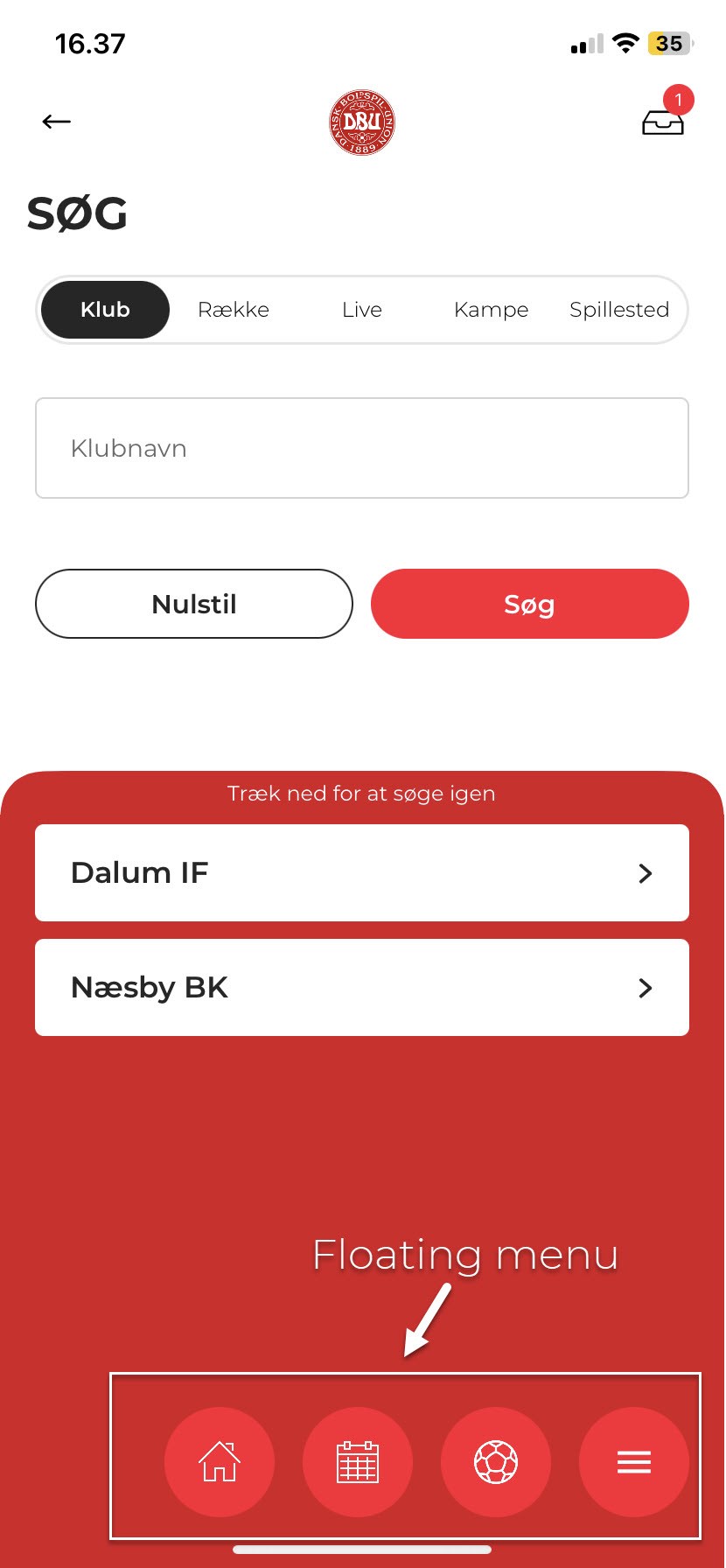 De fire bolde i bunden følger således med rundt, og derfor kan man altid komme tilbage til forsiden, til sin fodboldkalender, til ’Min Fodbold’ og til ’Burgermenuen’ – den samlede holdopstilling af funktioner.
