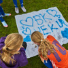 Da de knap 300 piger blev samlet i en stor cirkel på banen, blev der pludselig helt stille. De vidste godt, at det, der skulle til at ske, var noget specielt. Noget højtideligt. Og så blev stilheden brudt af først ”Der er et yndigt land” og dernæst ”Du gamla, du fria”.