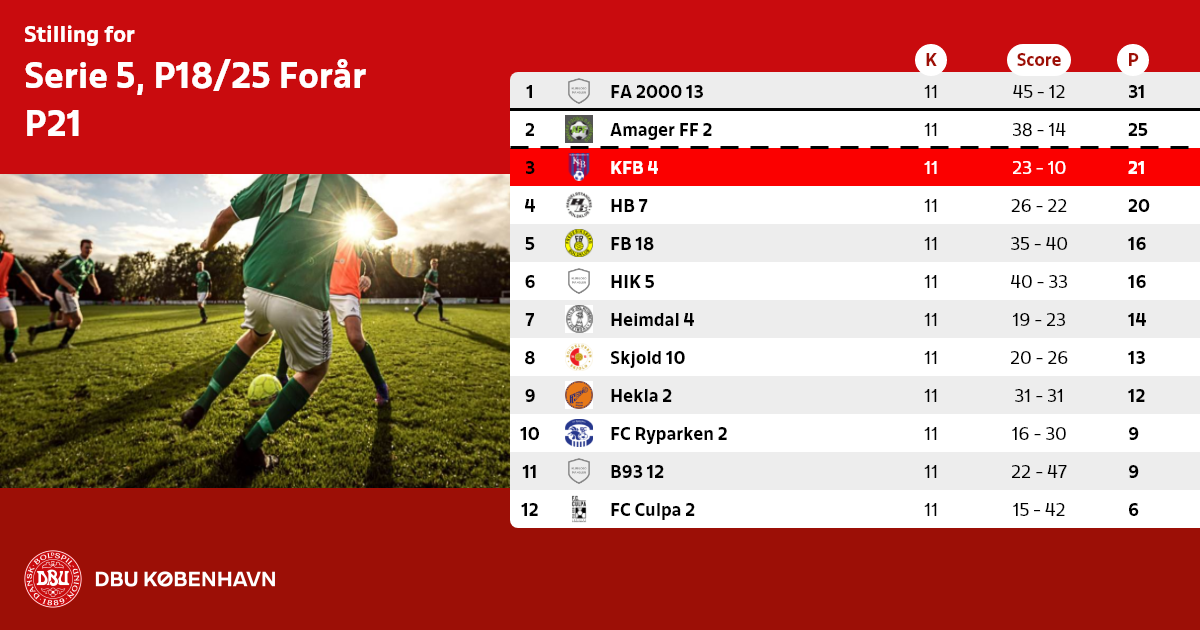 De pågældende 1. holds placering i efteråret 2021 afgøres af DBU København.