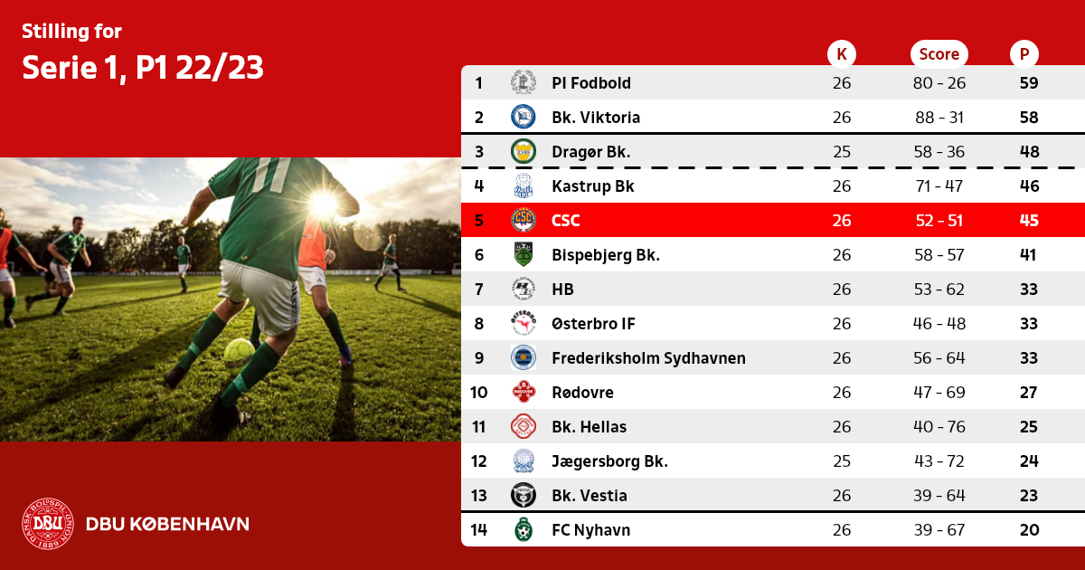 De 2 bedst placerede oprykningsberettigede hold rykker op i Københavnsserien 2023/24