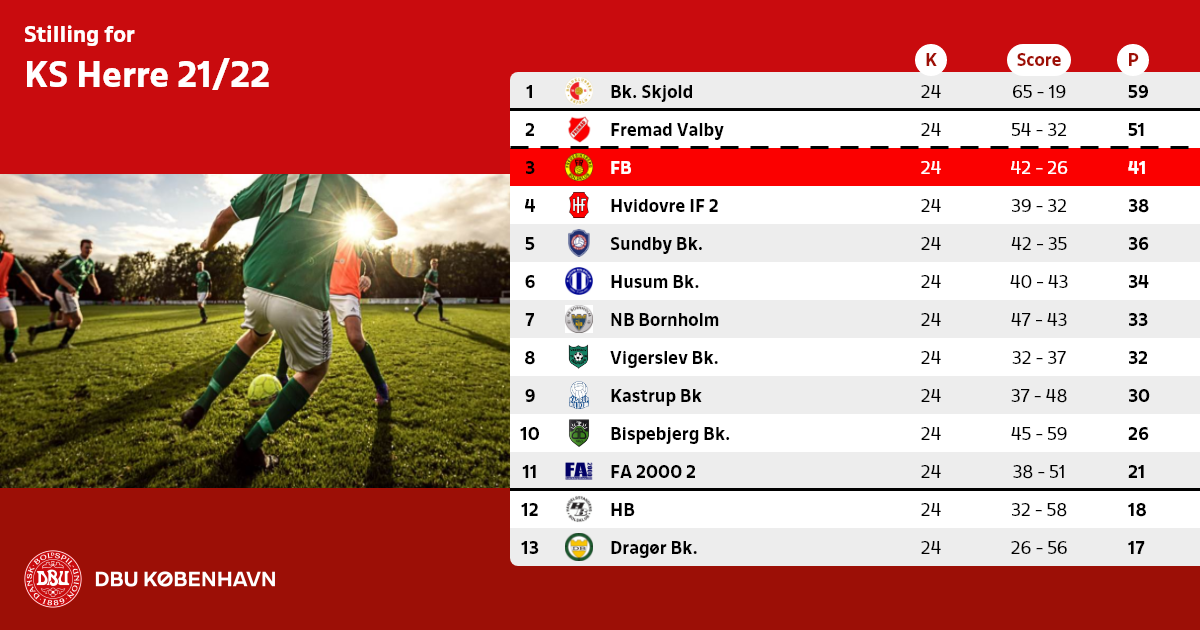 2. hold fra DBU København-klubber rykker ned i Serie 1 pulje 2, mens NB Bornholm vil rykke ned i DBU Bornholms bedste række.