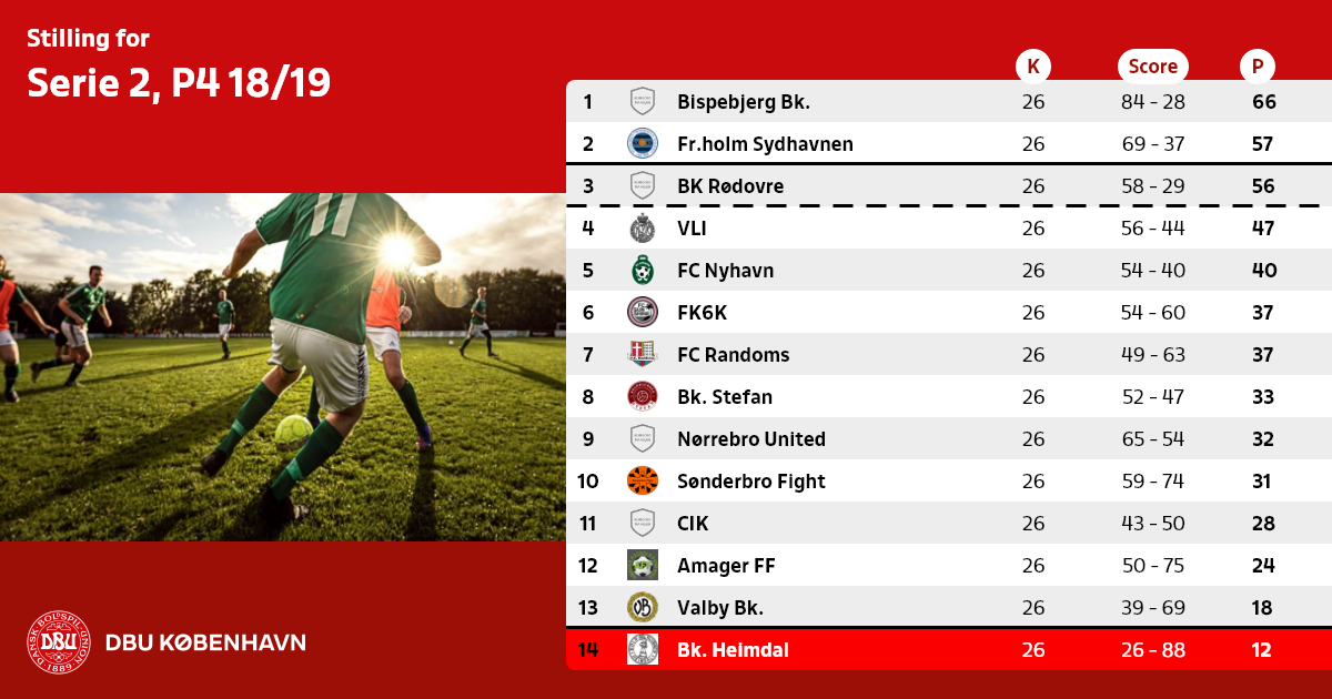 Nr. 3 rykker op, såfremt der ikke findes et oprykningsberettiget hold fra Serie 1, pulje 3 til Københavnsserien efter 2019 forår.