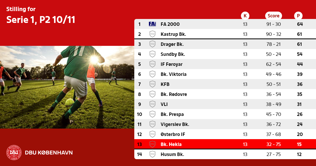 Ønsker du at se efterårets resultater, kampe og stilling, så tryk HER