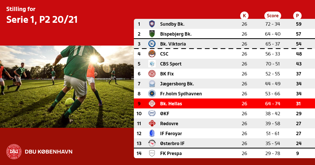 Nedrykning: Antal hold, der rykker ned svarer til antallet af DBU København 1. hold, der rykker ud af Københavnsserien.