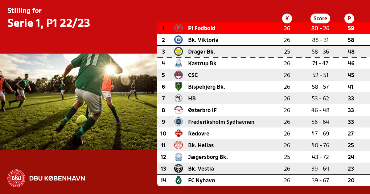 De 2 bedst placerede oprykningsberettigede hold rykker op i Københavnsserien 2023/24