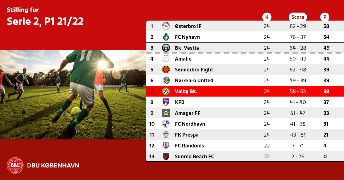 Nr. 3 rykker op, såfremt der ikke findes et oprykningsberettiget hold fra Serie 1 pulje 2 til Københavnsserien efter forår 2022.