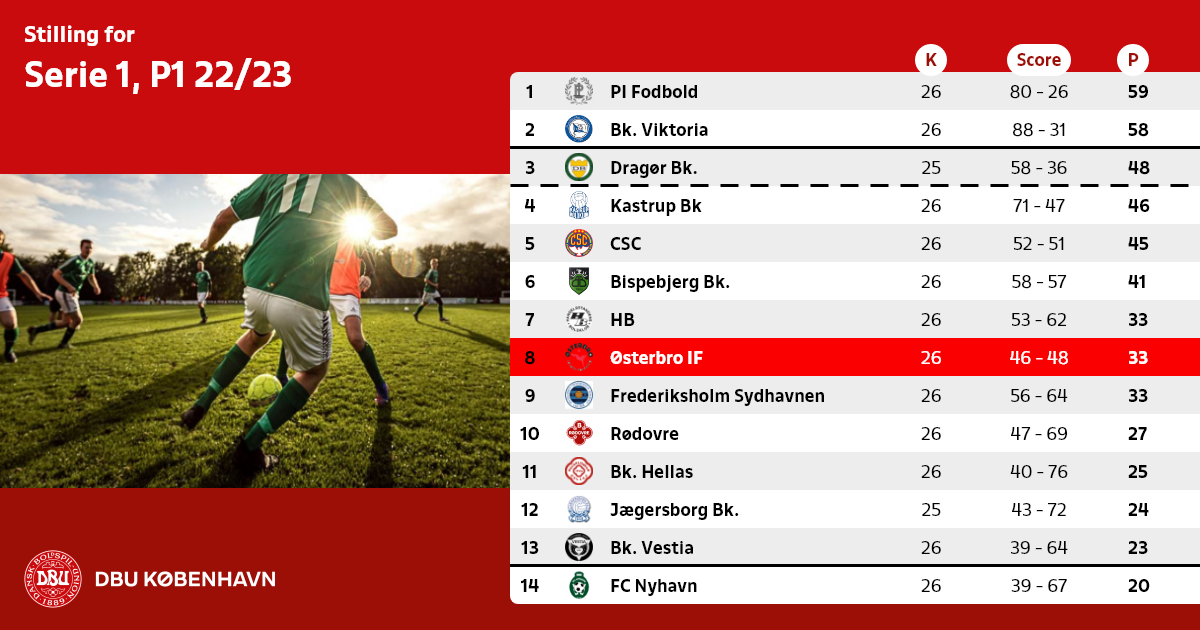 De 2 bedst placerede oprykningsberettigede hold rykker op i Københavnsserien 2023/24