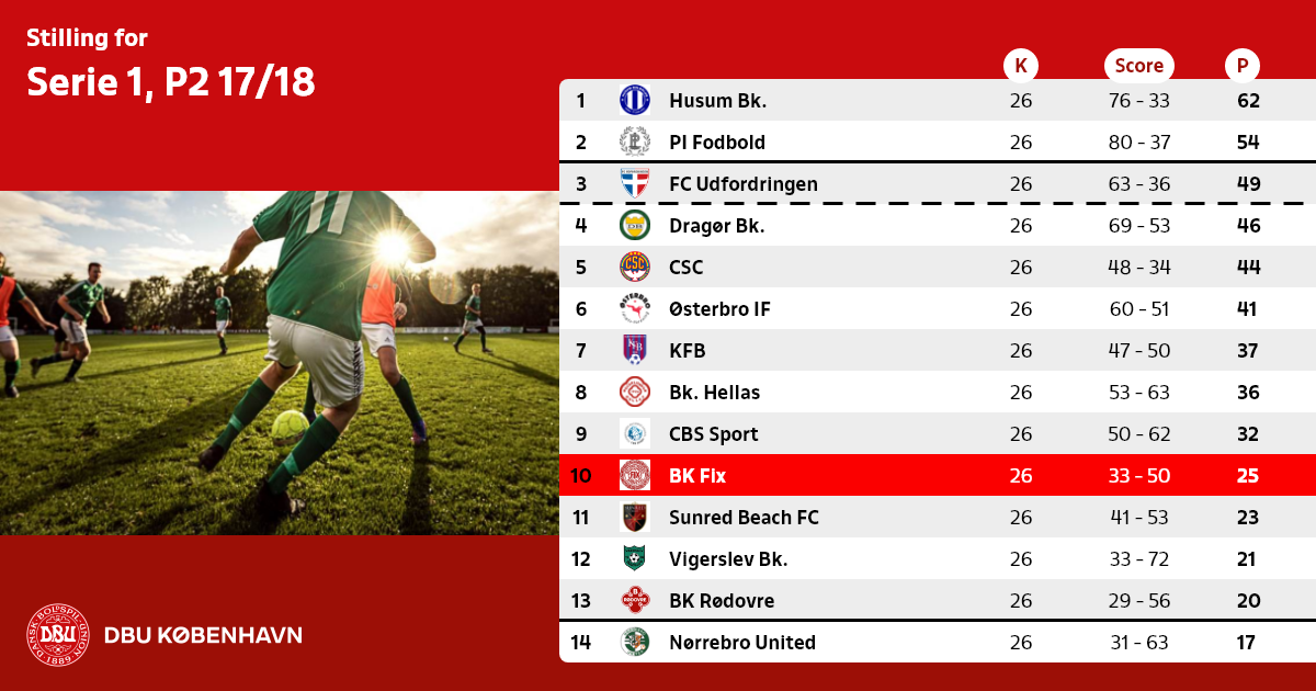 Nedrykning: antallet af hold, der rykker ned i Serie 2, pulje 4 svarer til antallet af DBU København 1.-hold, der rykker ud af Københavnsserien 2017/18.