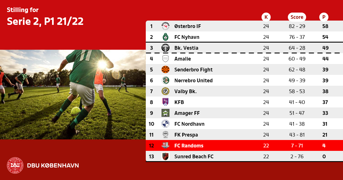 Nr. 3 rykker op, såfremt der ikke findes et oprykningsberettiget hold fra Serie 1 pulje 2 til Københavnsserien efter forår 2022.