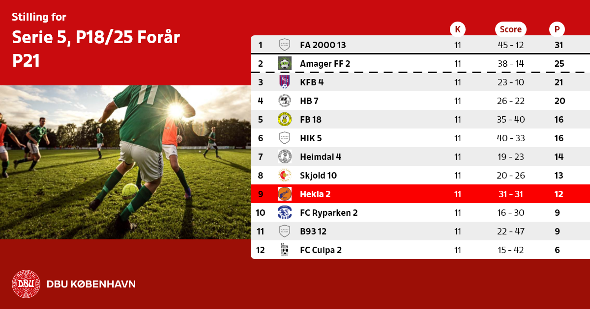 De pågældende 1. holds placering i efteråret 2021 afgøres af DBU København.