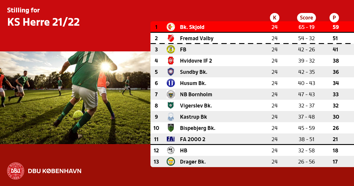2. hold fra DBU København-klubber rykker ned i Serie 1 pulje 2, mens NB Bornholm vil rykke ned i DBU Bornholms bedste række.