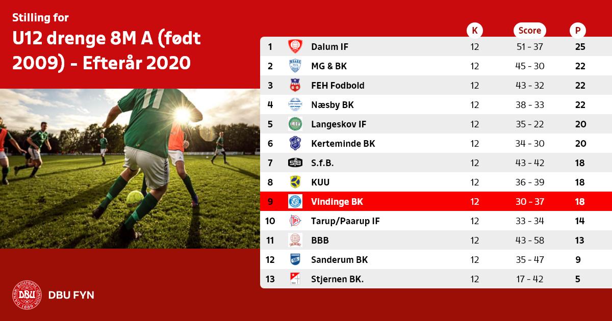 U12 drenge 8M A (født 2009) - Efterår 2020