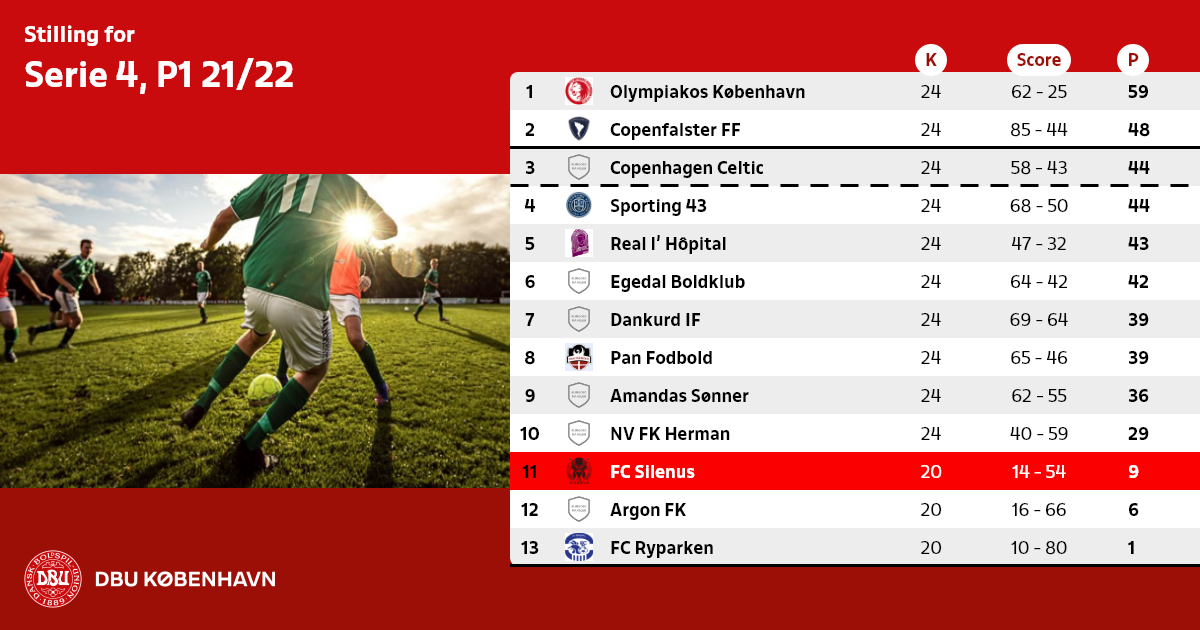 Antallet af hold, der rykker ned, svarer til antallet af DBU København 1.-hold, der rykker ud af Københavnsserien 2021/22.