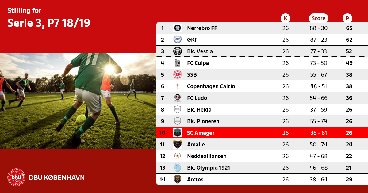Nr. 3 rykker op, såfremt der ikke findes et oprykningsberettiget hold fra Serie 1, pulje 3 til Københavnsserien efter 2019 forår.