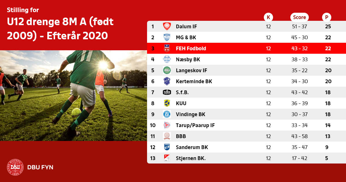 U12 drenge 8M A (født 2009) - Efterår 2020